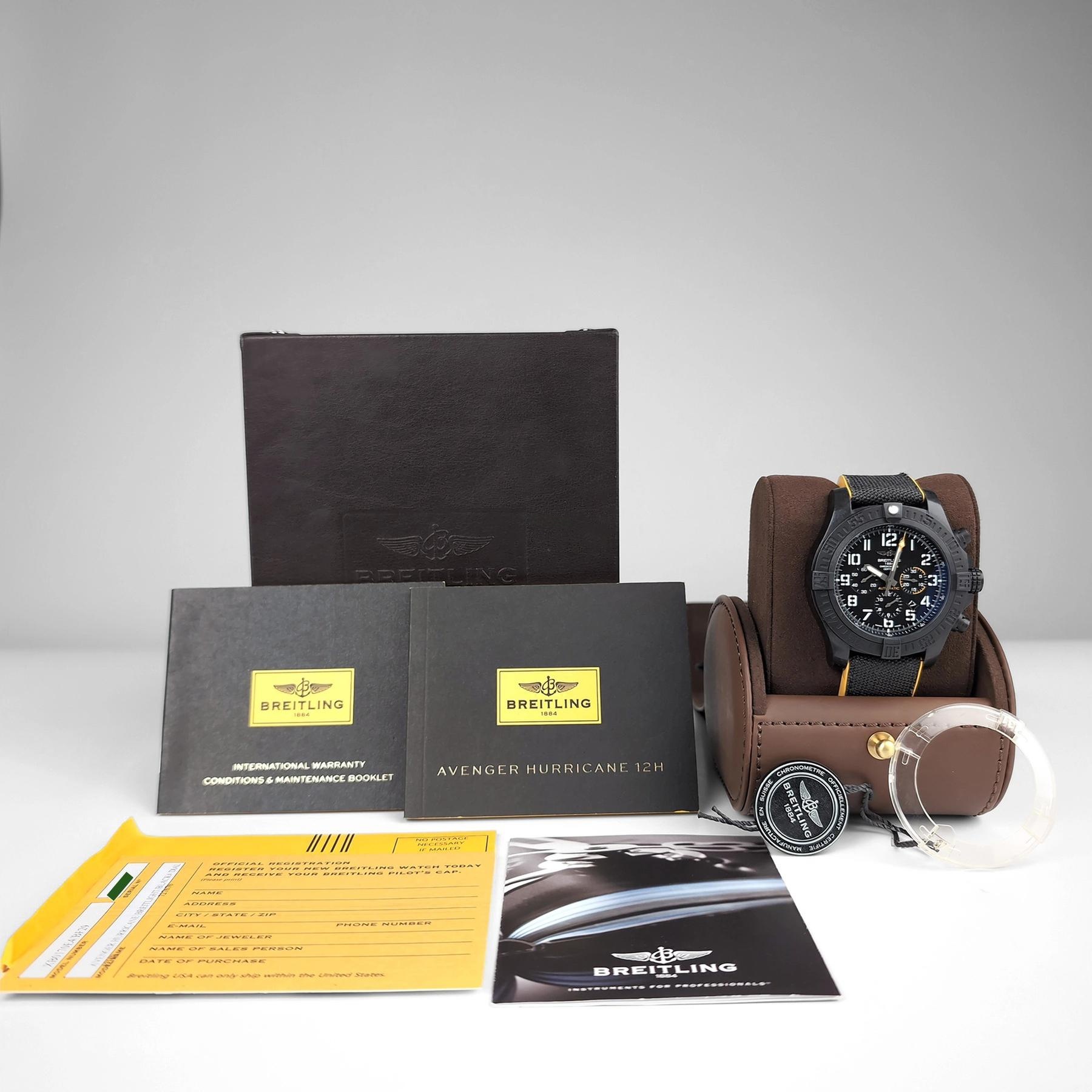 This Avenger Hurricane is a super light sporty chronograph and a perfect example of why the colors black and yellow are seemingly meant for each other. This chronograph not only looks quite sporty, it actually is. Breitlight is a super light and robust material, developed by Breitling. The case itself barely hits the 30-gram mark which makes it feel extremely light on the wrist.