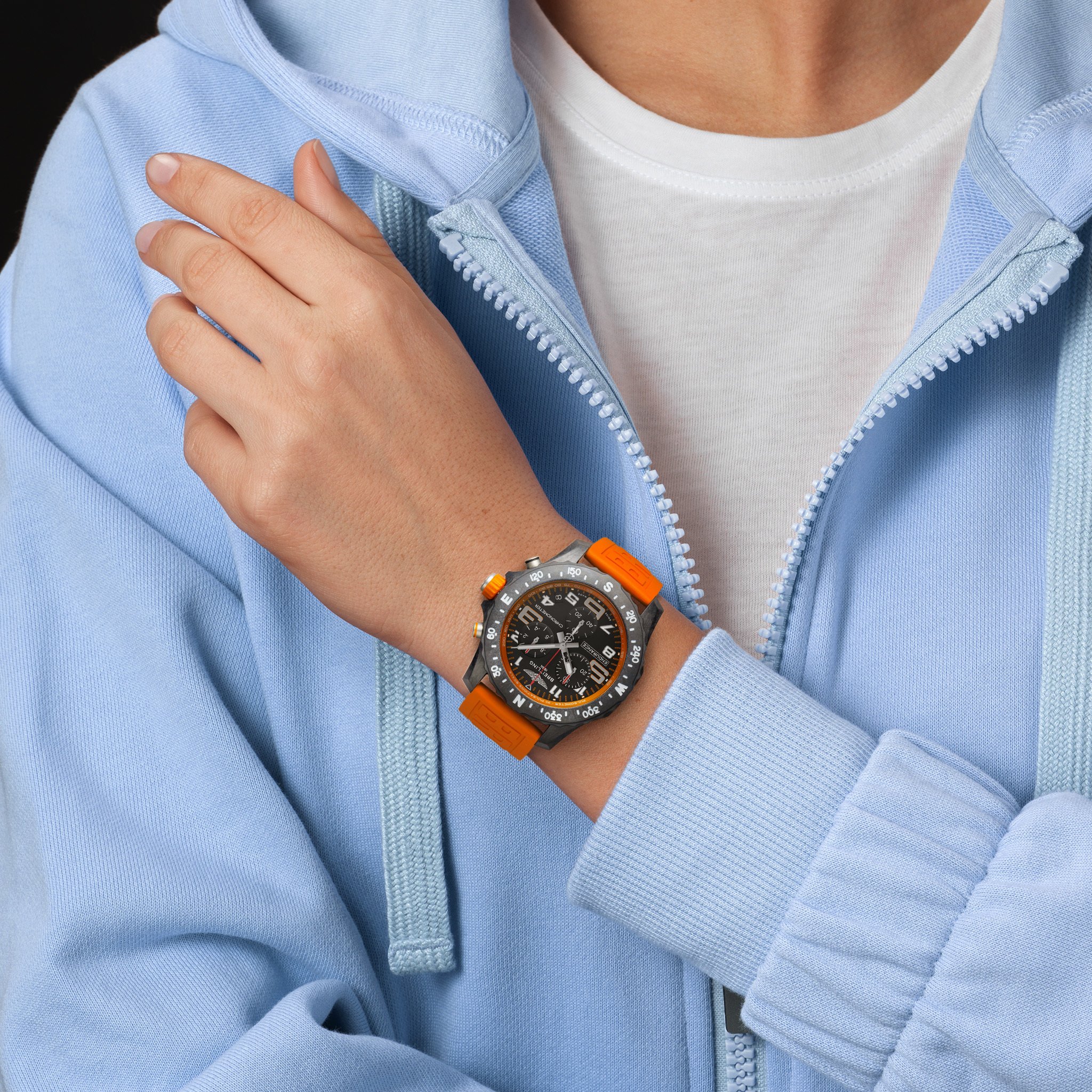 Designed to be both a lightweight timepiece for athletes and a casual, everyday sports chronograph, the Endurance Pro perfectly blends innovative technology with a vibrant design to produce the ultimate athleisure watch. Designed for men and women whose active lives combine a professional mindset with a sporty lifestyle, the Endurance Pro is up to the challenges of a rigorous workout, but fashionable enough for everyday wear. The Endurance Pro features an ultra-light Breitlight® case, a robust material 3.3 times lighter than titanium and 5.8 times lighter than stainless steel. Non-magnetic, thermally stable and hypoallergenic, Breitlight® is highly resistant to scratches, traction and corrosion. It also has a feel that is warmer than metal and a slightly textured effect, accentuating the originality of the design. Exclusive to Breitling, the material is 100-percent Swiss-made. In 44 mm or 38 mm, the Endurance Pro is available to athletes with a multitude of colorful dials and rubber straps all fitting a Breitlight® tang-type buckle. The two sizes are respectively powered by Breitling’s Caliber 82 and 83, both COSC-certified SuperQuartz™ chronographs delivering exceptional precision.