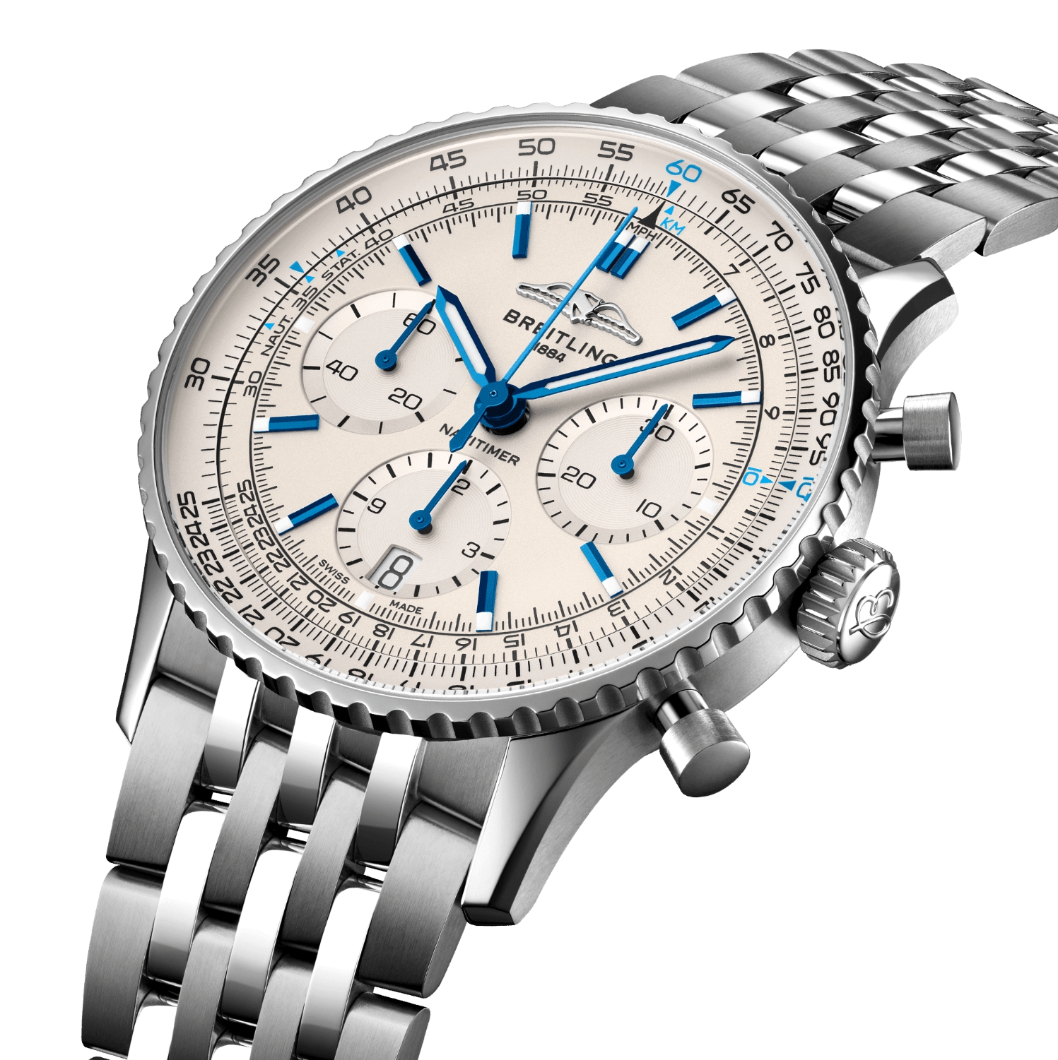 Breitling’s iconic pilot’s chronograph – for the journey. In 1952, Willy Breitling developed a wrist-worn chronograph with a circular slide rule that would allow pilots to perform all necessary flight calculations. Two years later, the Aircraft Owners and Pilots Association (AOPA) announced the design as its official timepiece. The “navigation timer” – or Navitimer – was born. The AOPA was (and remains) the largest pilots’ club in the world, counting nearly every US aviator among its ranks. As the defacto pilot’s watch throughout the glory days of civil aviation, the Navitimer was worn by airline captains and aircraft enthusiasts. It even made its way into space on the wrist of astronaut Scott Carpenter in 1962. And it wasn’t only pilots drawn to the watch’s irrepressible aesthetic. Celebrities of the day such as Miles Davis and Serge Gainsbourg were devotees, proving that the Navitimer had style as well as function. There have been many iterations of Breitling’s icon since its debut 70 years ago, but this new Navitimer captures its most classic features, while enhancing them with modern refinements. A flattened slide rule and a domed crystal create the illusion of a sleeker profile. Alternating polished and brushed metal elements give a lustrous, yet understated finish. Most notably, new colors in shades of blue, green and copper, define the updated dial options. And if there is one update sure to spark nostalgia, it’s the return of the AOPA wings to their original position at 12 o’clock. For 70 years, Breitling’s original pilot’s watch has been beloved by aviators and tastemakers in equal measure. Worn by astronauts in space and the biggest stars on earth, it is Breitling’s most iconic timepiece and one of the most recognizable watches of all time.