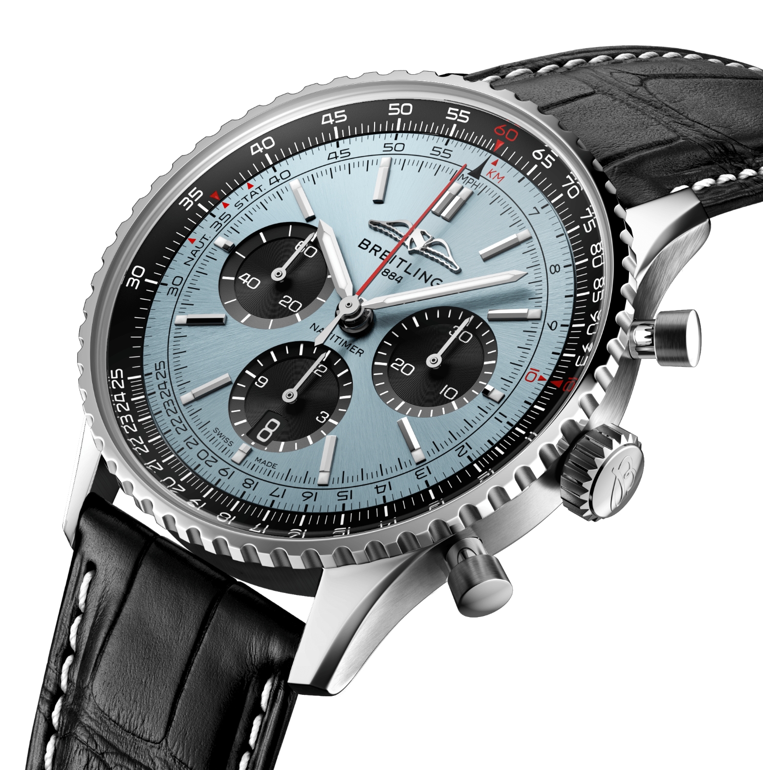 Breitling’s iconic pilot’s chronograph – for the journey. In 1952, Willy Breitling developed a wrist-worn chronograph with a circular slide rule that would allow pilots to perform all necessary flight calculations. Two years later, the Aircraft Owners and Pilots Association (AOPA) announced the design as its official timepiece. The “navigation timer” – or Navitimer – was born. The AOPA was (and remains) the largest pilots’ club in the world, counting nearly every US aviator among its ranks. As the defacto pilot’s watch throughout the glory days of civil aviation, the Navitimer was worn by airline captains and aircraft enthusiasts. It even made its way into space on the wrist of astronaut Scott Carpenter in 1962. And it wasn’t only pilots drawn to the watch’s irrepressible aesthetic. Celebrities of the day such as Miles Davis and Serge Gainsbourg were devotees, proving that the Navitimer had style as well as function. There have been many iterations of Breitling’s icon since its debut 70 years ago, but this new Navitimer captures its most classic features, while enhancing them with modern refinements. A flattened slide rule and a domed crystal create the illusion of a sleeker profile. Alternating polished and brushed metal elements give a lustrous, yet understated finish. Most notably, new colors in shades of blue, green and copper, define the updated dial options. And if there is one update sure to spark nostalgia, it’s the return of the AOPA wings to their original position at 12 o’clock. For 70 years, Breitling’s original pilot’s watch has been beloved by aviators and tastemakers in equal measure. Worn by astronauts in space and the biggest stars on earth, it is Breitling’s most iconic timepiece and one of the most recognizable watches of all time.