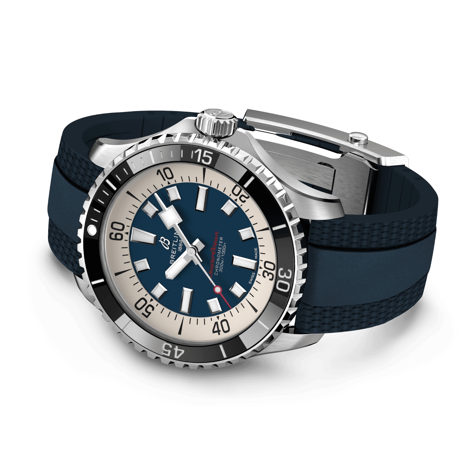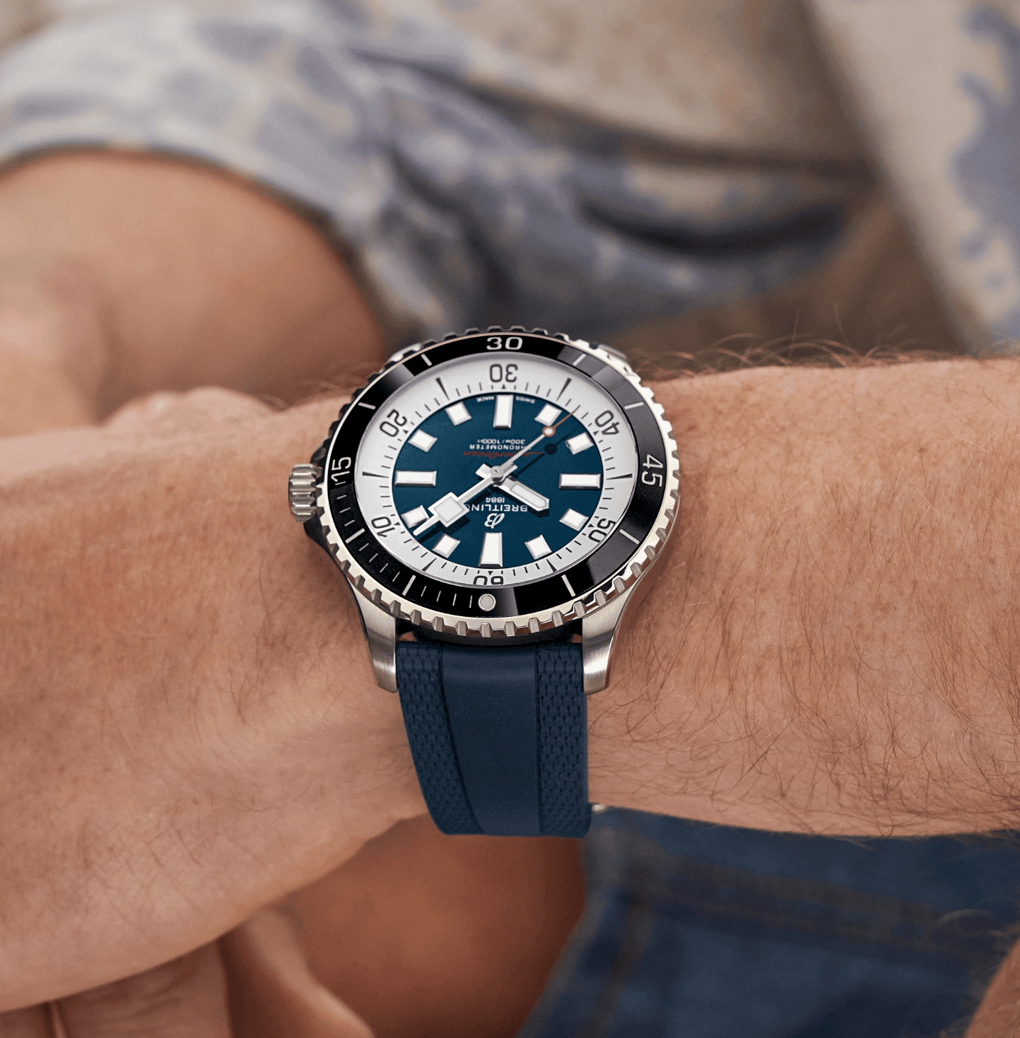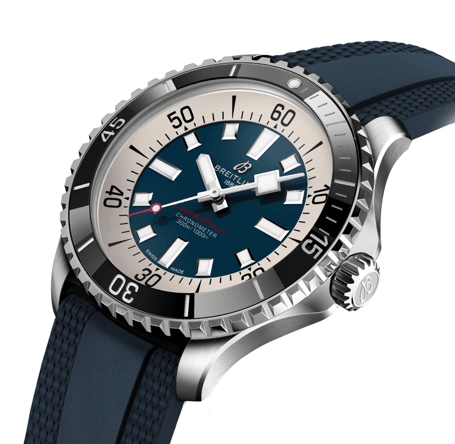 Performance and style for all your water sports. In the 1960s, the new sport of scuba diving became all the rage. For divers, every second counts, so Breitling set out to provide them with the clearest and most readable diving watch, and deleted all functions that did not support underwater life-saving needs. The streamlined watch is called “Slow Motion”. The watch retains clean lines, thick luminous hour markers, square hands and a contrasting bezel, all designed to maximize legibility. The practicality is truly outstanding. But what really makes people fall in love with it is its appearance. The new Superocean watch retains the famous design elements of the Slow Motion watch while adding modern features, such as a ceramic inlaid bezel and a brightly colored dial. The wide hands and hour markers are coated with Super-LumiNova® for easy reading underwater. The watch is water-resistant to 300 meters (1,000 feet) and is shock-proof, sand-proof and sea-water proof. The bronze version uses a special alloy that is extremely resistant to corrosion, but will still develop a subtle tarnish over time, making the watch even more unique. Two strap options (rubber and metal) with folding clasp allow for fine adjustments of up to 15 mm, making it easy to wear over a jellyfish suit or wetsuit. The scratch-resistant ceramic inlaid bezel will never wear or fade. For security reasons, most bezel sizes are unidirectional; the 46mm bezel is bidirectional and features a patented lock. Even better, it's not strictly a dive watch anymore - you can wear it surfing, swimming, heading to a beach bar and then to dinner. The Superocean watch is the perfect balance between nostalgic feelings for the historical heritage of the watch and a new look.