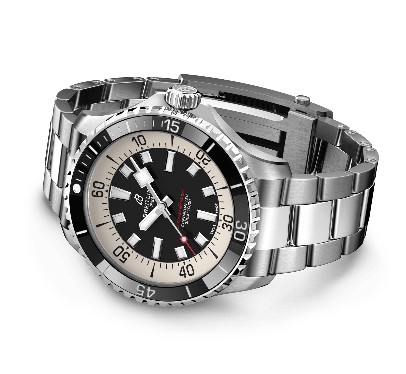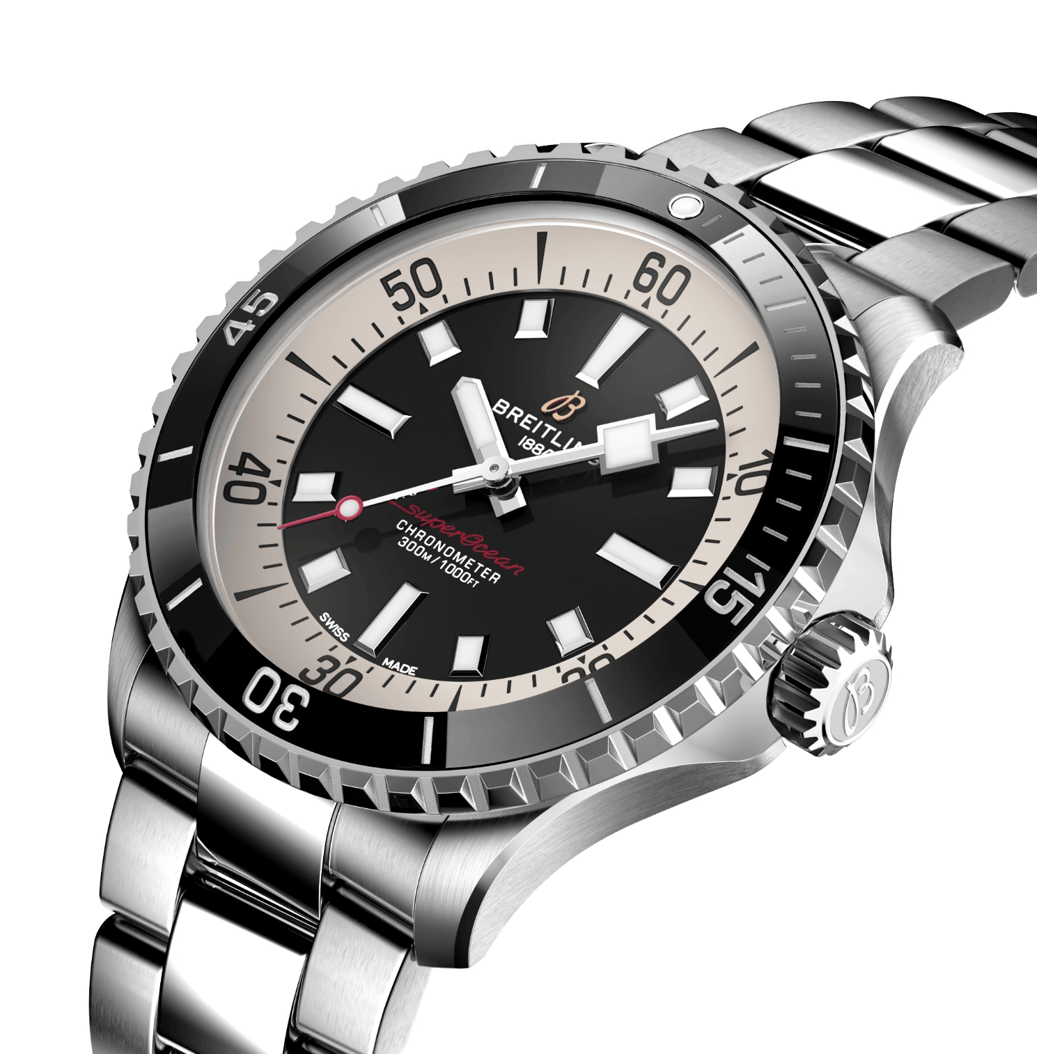Performance and style for all your water sports. In the 1960s, the new sport of scuba diving became all the rage. For divers, every second counts, so Breitling set out to provide them with the clearest and most readable diving watch, and deleted all functions that did not support underwater life-saving needs. The streamlined watch is called “Slow Motion”. The watch retains clean lines, thick luminous hour markers, square hands and a contrasting bezel, all designed to maximize legibility. The practicality is truly outstanding. But what really makes people fall in love with it is its appearance. The new Superocean watch retains the famous design elements of the Slow Motion watch while adding modern features, such as a ceramic inlaid bezel and a brightly colored dial. The wide hands and hour markers are coated with Super-LumiNova® for easy reading underwater. The watch is water-resistant to 300 meters (1,000 feet) and is shock-proof, sand-proof and sea-water proof. The bronze version uses a special alloy that is extremely resistant to corrosion, but will still develop a subtle tarnish over time, making the watch even more unique. Two strap options (rubber and metal) with folding clasp allow for fine adjustments of up to 15 mm, making it easy to wear over a jellyfish suit or wetsuit. The scratch-resistant ceramic inlaid bezel will never wear or fade. For security reasons, most bezel sizes are unidirectional; the 46mm bezel is bidirectional and features a patented lock. Even better, it's not strictly a dive watch anymore - you can wear it surfing, swimming, heading to a beach bar and then to dinner. The Superocean watch is the perfect balance between nostalgic feelings for the historical heritage of the watch and a new look.
